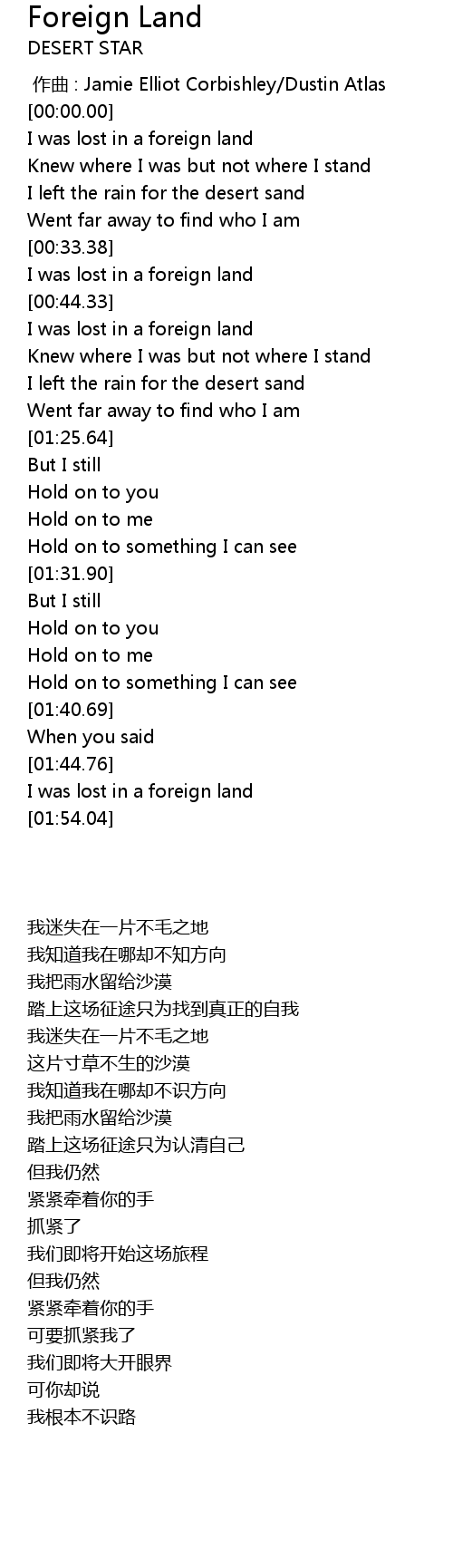 | [00:41.72] | I was lost in a foreign land |