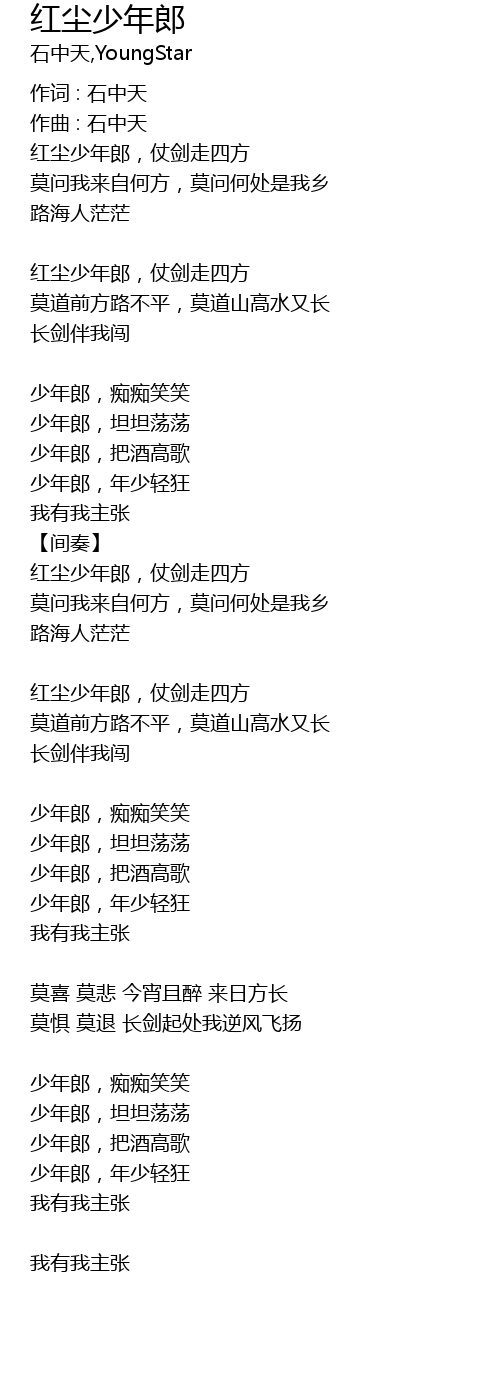 | hóng chén shào nián láng, zhàng jiàn zǒu sì fāng | |
