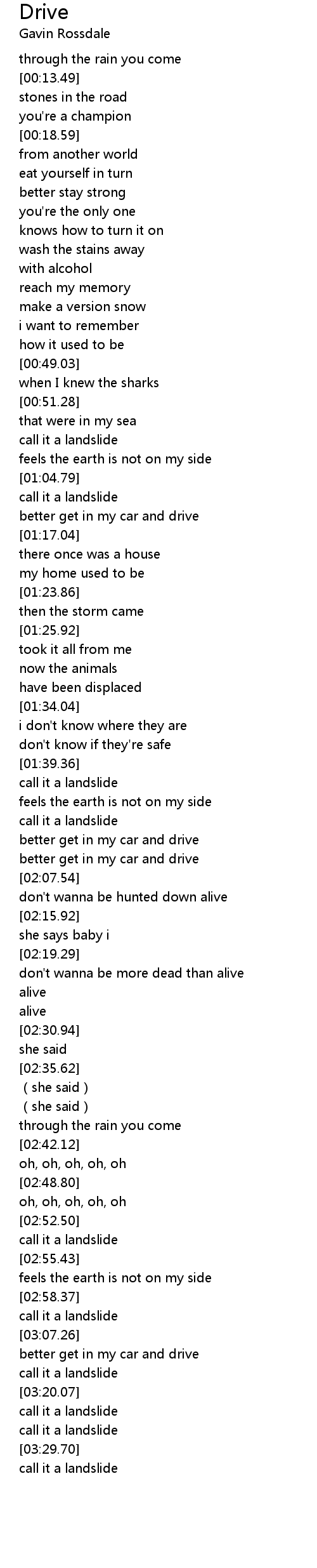 | [02:03.48] | better get in my car and drive |