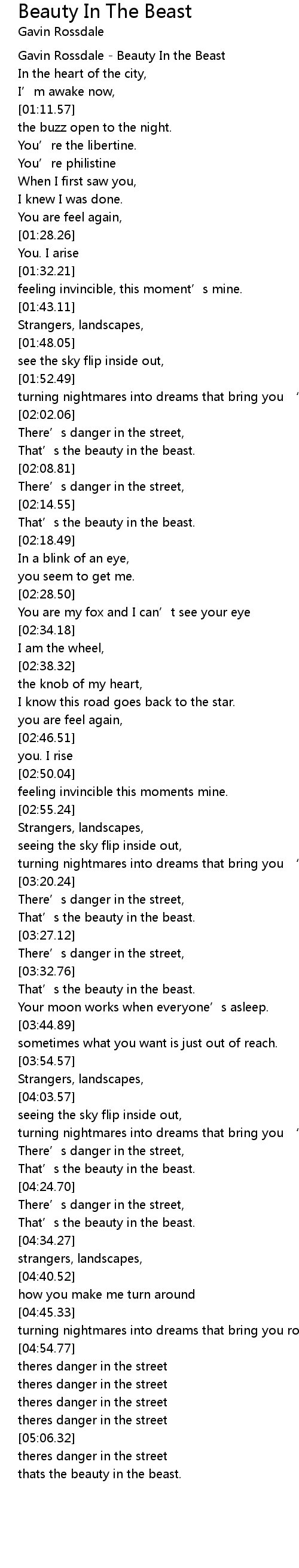 | [00:00.29] | Gavin Rossdale - Beauty In the Beast |