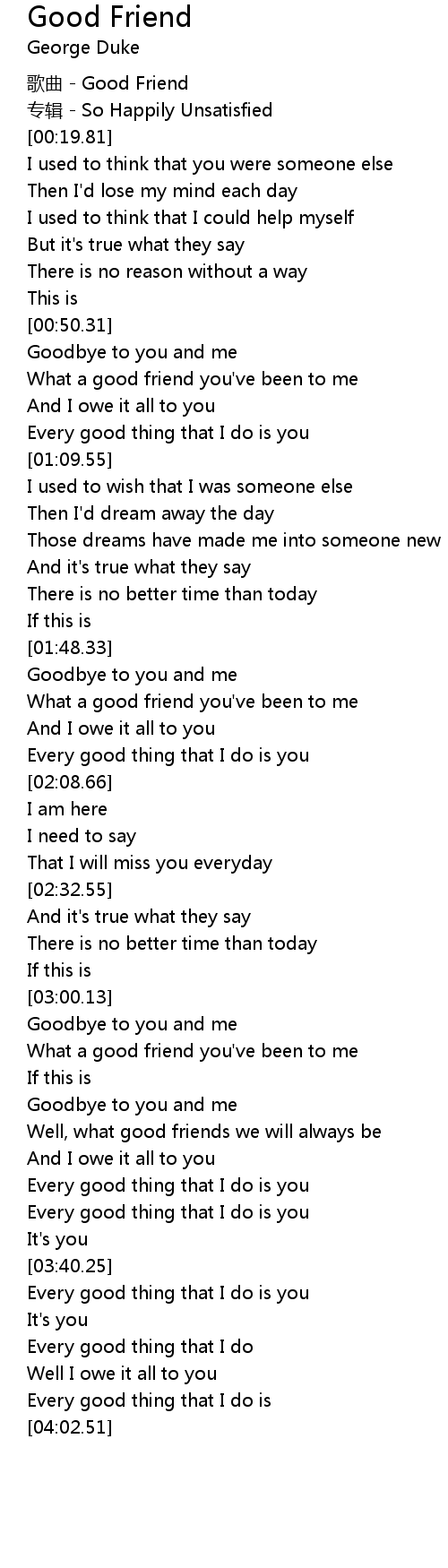 | [00:55.16] | What a good friend you've been to me |