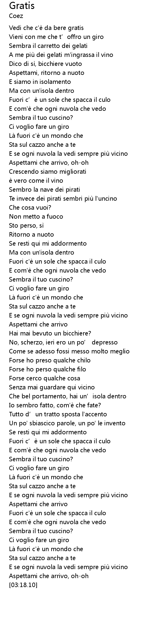 | [00:13.18] | Vedi che c'è da bere gratis |