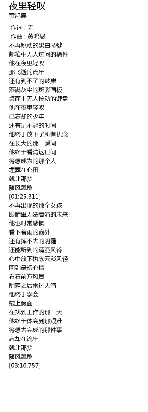 | [00:01.000] | 作曲 : 黄鸿展 |
