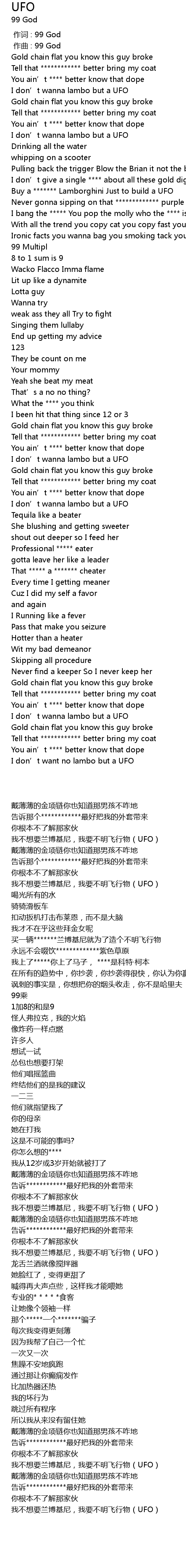 | [00:01.000] | 作曲 : 99 God |