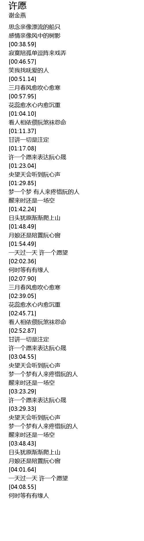 | [02:58.71] | 许一个愿来表达阮心晟 |
