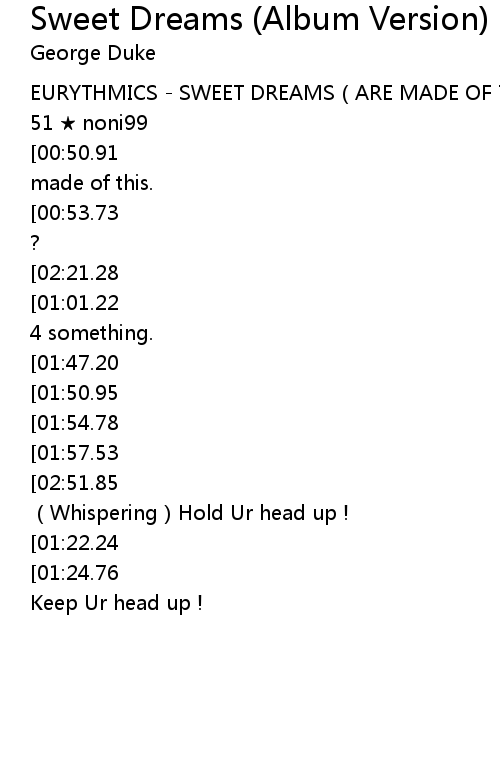 | Song | Sweet Dreams (Album Version) |