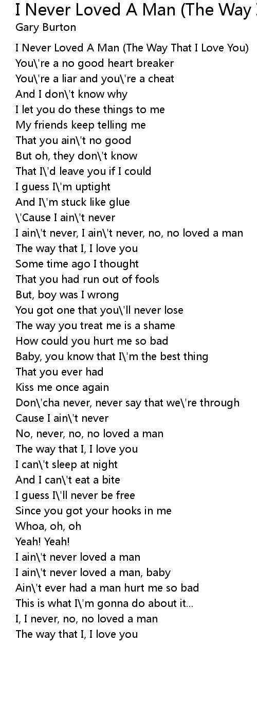 I ain\'t never, I ain\'t never, no, no loved a man |