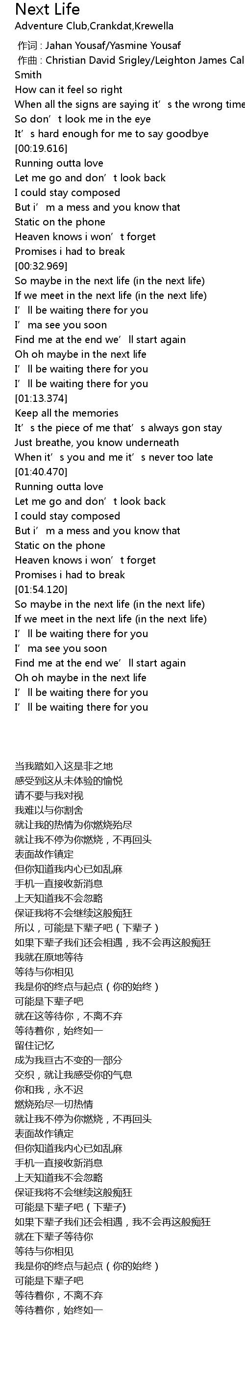 | [01:54.487] | So maybe in the next life (in the next life) |