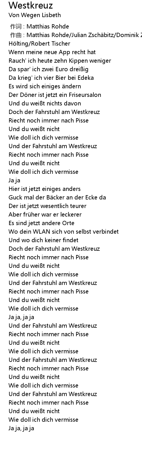 | [00:43.42] | Doch der Fahrstuhl am Westkreuz |