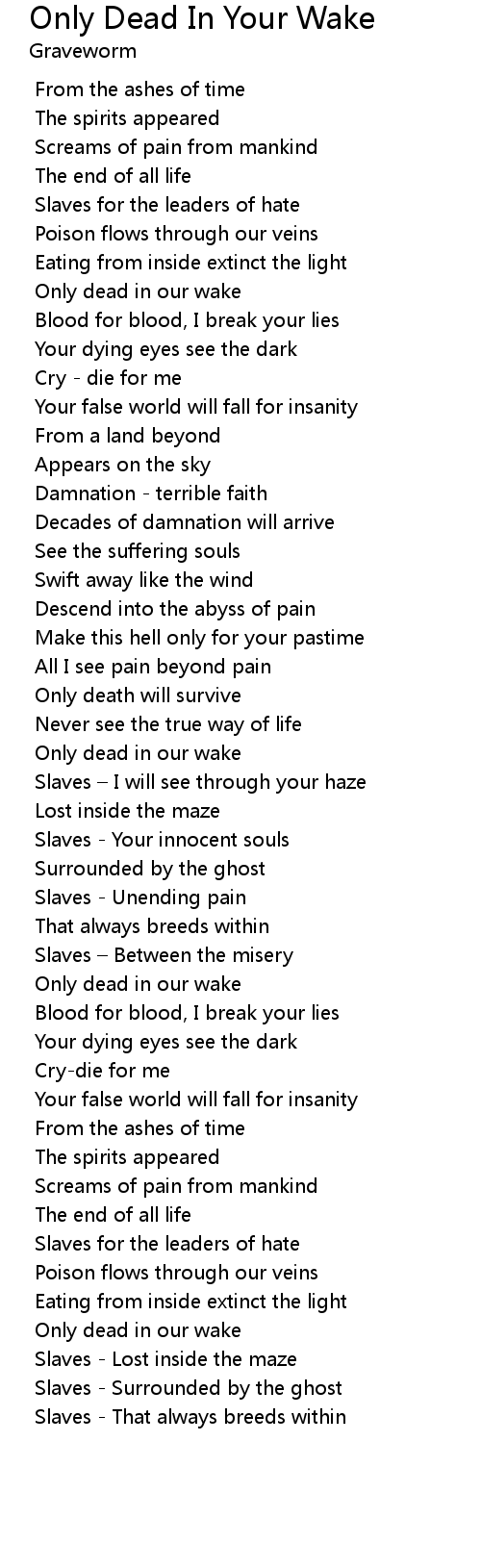 | [02:23.66] | Only dead in our wake |