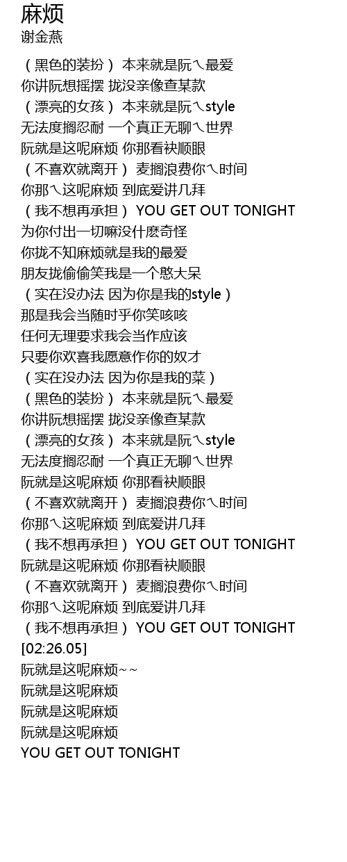 | [02:45.89] | 阮就是这呢麻烦~~ |