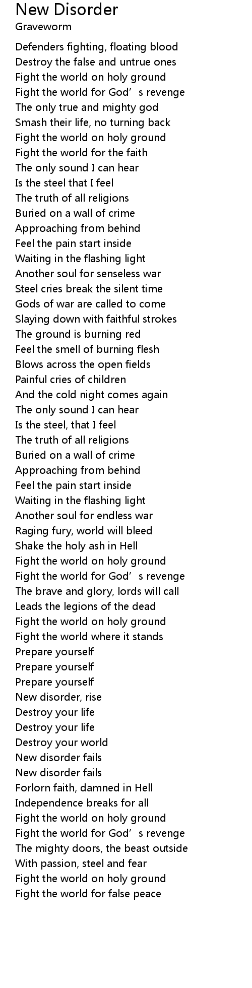 | Fight the world for God' s revenge | |