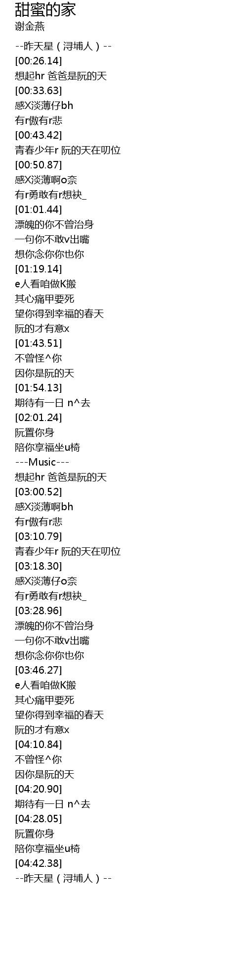 | [00:22.19] | --昨天星(浔埔人)-- |
