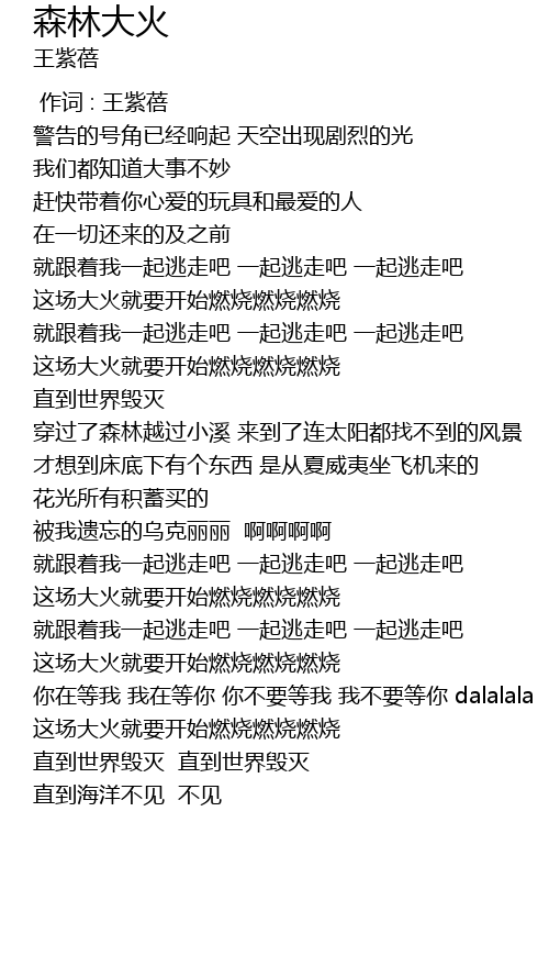 | [00:00.000] | 作词 : 王紫蓓 |