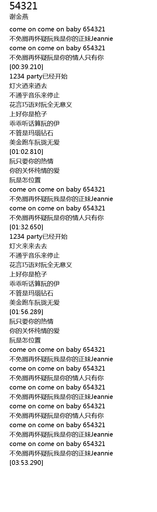 | [01:34.220] | 1234 party yǐ jīng kāi shǐ |