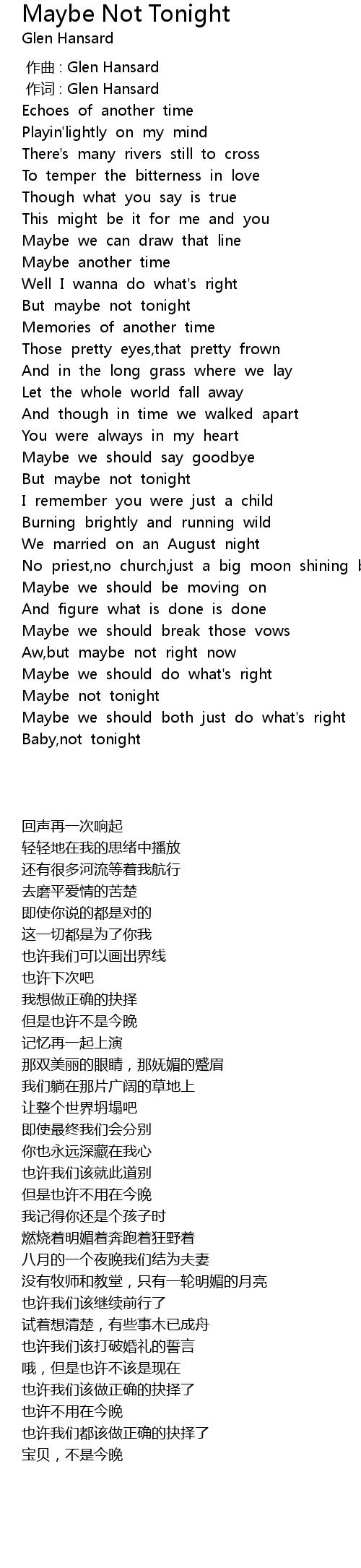 | [00:00.00] | zuò qǔ : Glen Hansard |