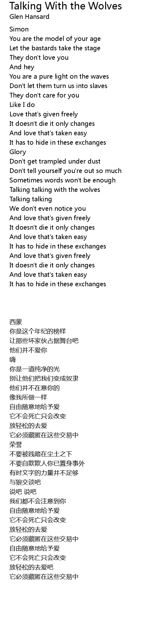 Song Talking With the Wolves