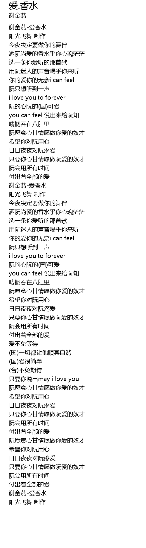 | [01:21.80] | xiè jīn yàn ài xiāng shuǐ |