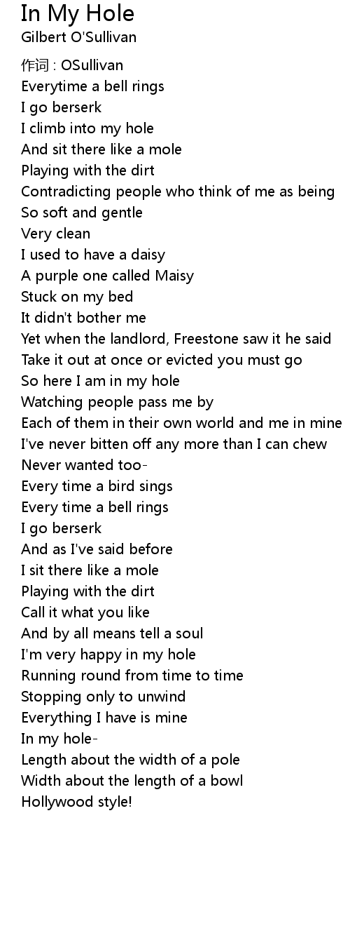 | I' m very happy in my hole | |