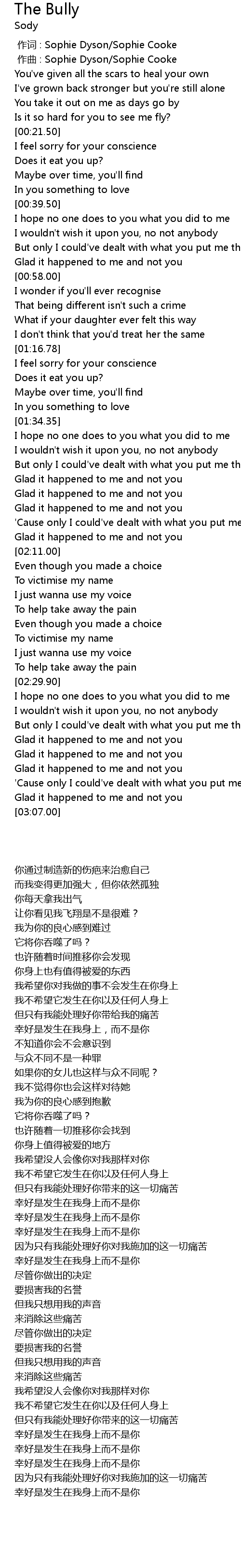 | [00:01.000] | zuo qu : Sophie Dyson Sophie Cooke |