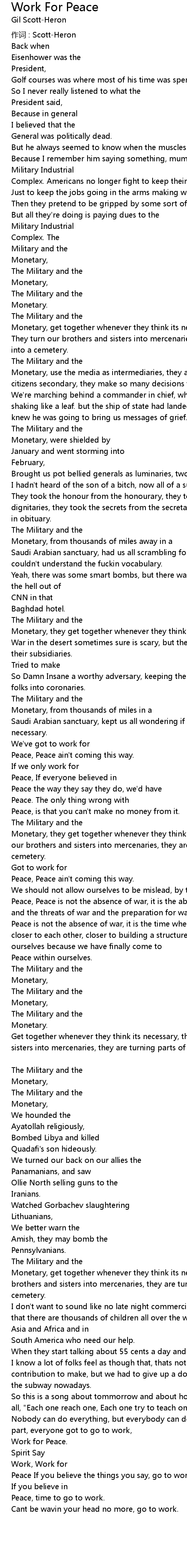 | Monetary, they get together whenever they think its necessary, they' ve turned our brothers and sisters into mercenaries, they are turning the planet, into a cemetery. | |