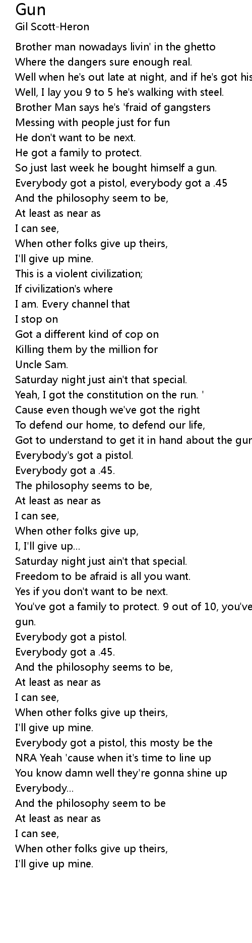 You've got a family to protect. 9 out of 10, you've got a friend, you've got a gun. |
