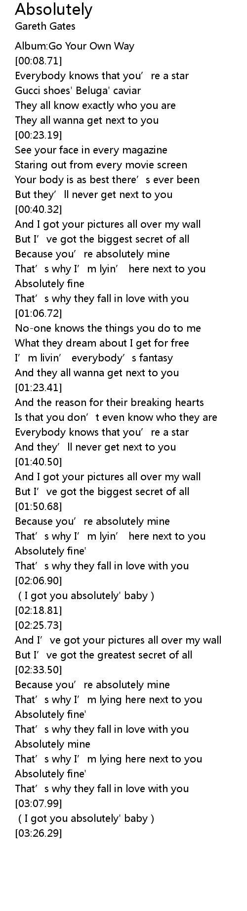 | [02:33.71] | Because you' re absolutely mine |