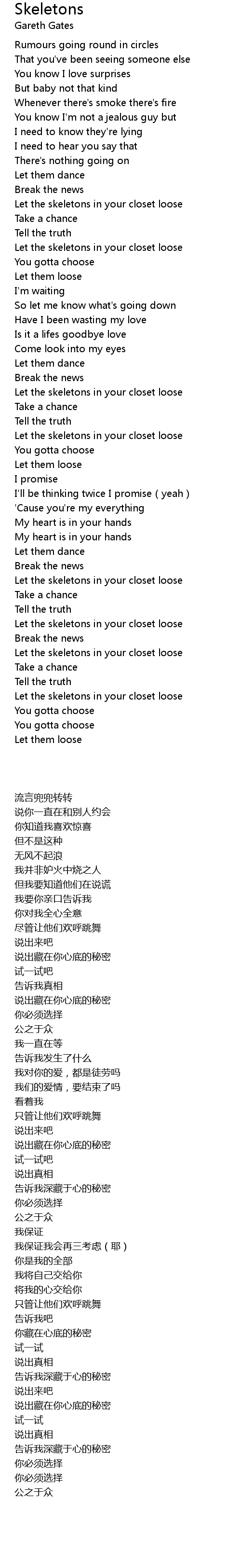| Song | Skeletons |