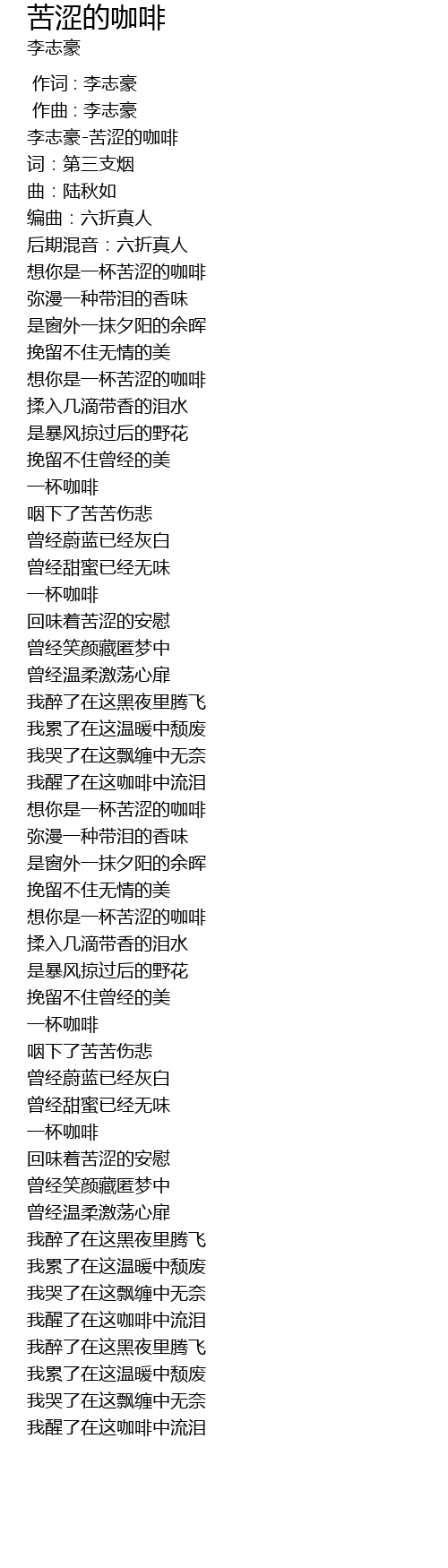 | [00:00.77] | 李志豪-苦涩的咖啡 |
