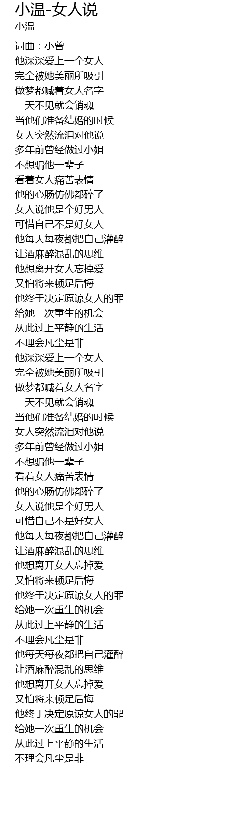 | [01:17.76] | 他终于决定原谅女人的罪 |