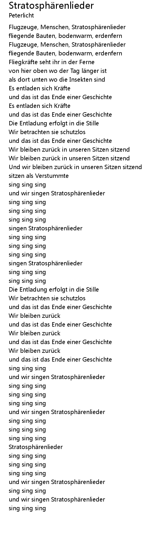 | und wir singen Stratosph renlieder | |