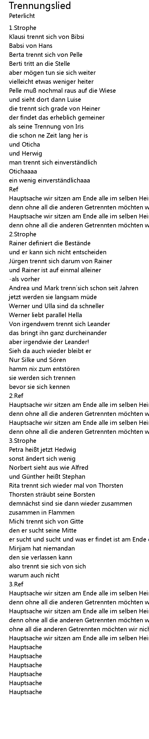 | denn ohne all die anderen Getrennten möchten wir nicht alleine sein | |