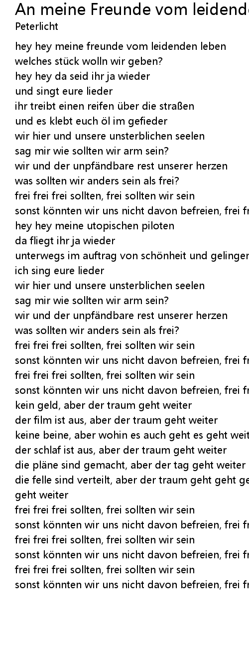 | Song | An meine Freunde vom leidenden Leben |