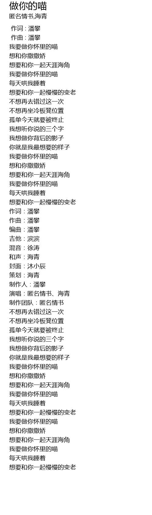 | [01:10.65] | 演唱:匿名情书、海青 |