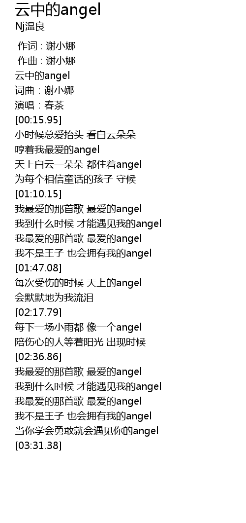 | [01:11.18] | 我最爱的那首歌 最爱的angel |