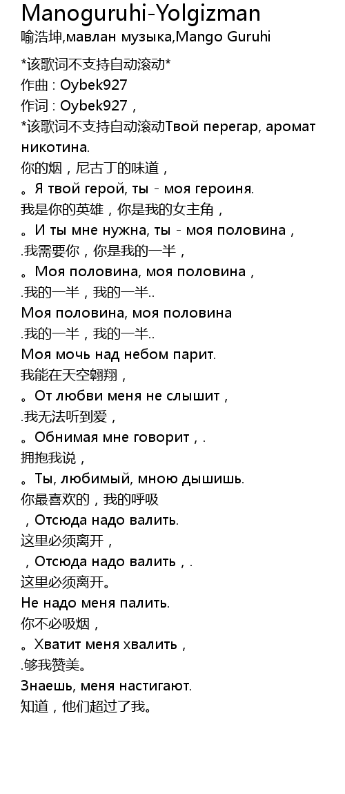 | *该歌词不支持自动滚动Твой перегар, аромат никотина. | |