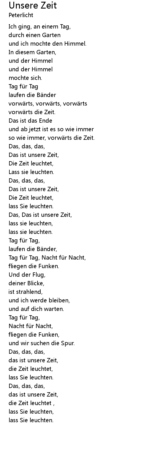 | Tag fü r Tag, Nacht fü r Nacht, | |
