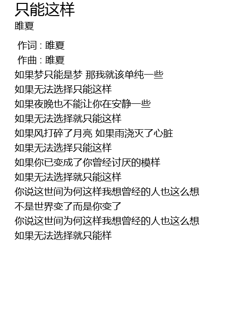 | [00:00.000] | 作词 : 雎夏 |