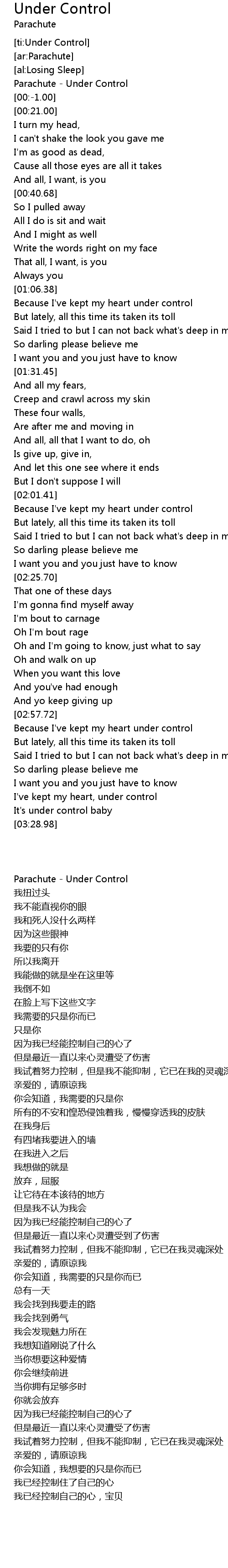 [ti:Under Control] |