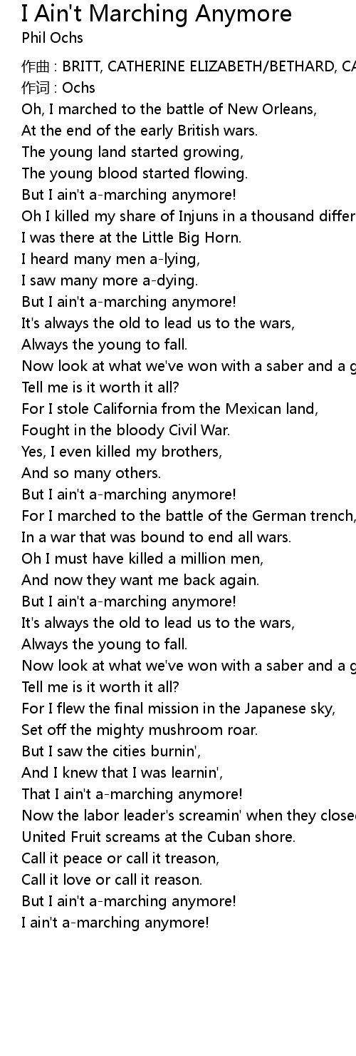 | But I ain't a-marching anymore! | |