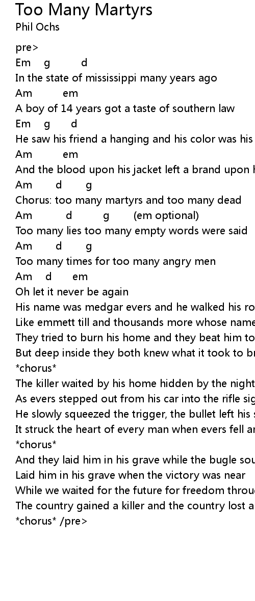 | Chorus: too many martyrs and too many dead | |