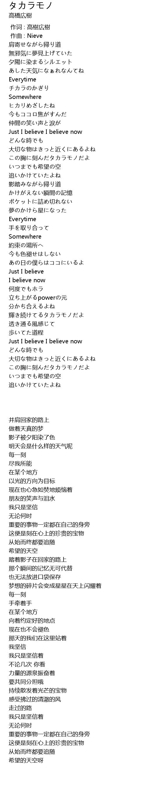 | [03:21.077] | 輝き続けてるタカラモノだよ |