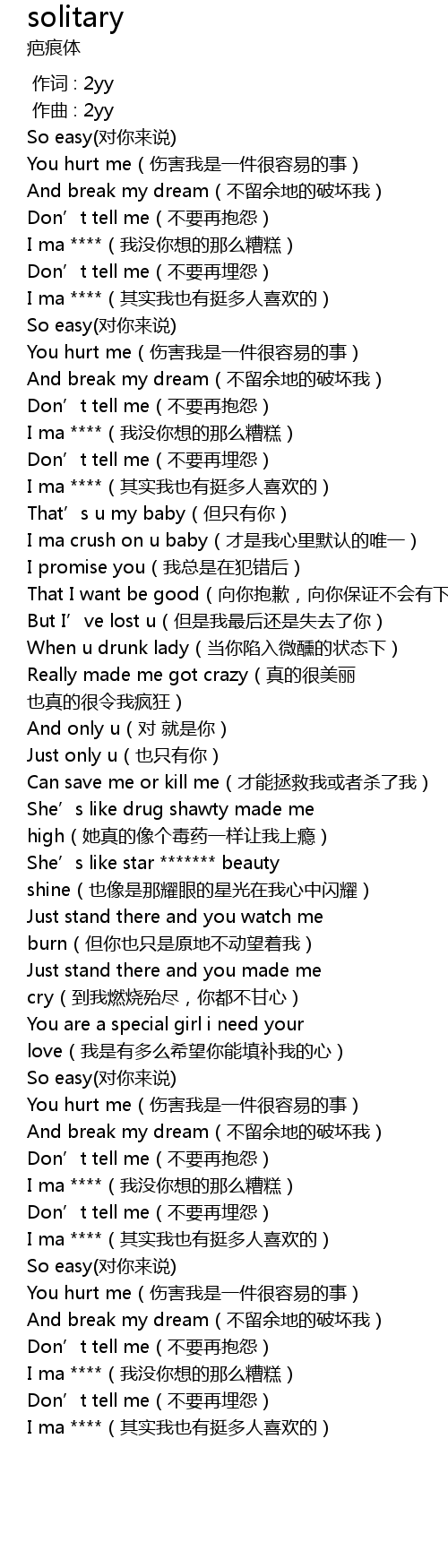 | [02:01.372] | You hurt me(伤害我是一件很容易的事) |