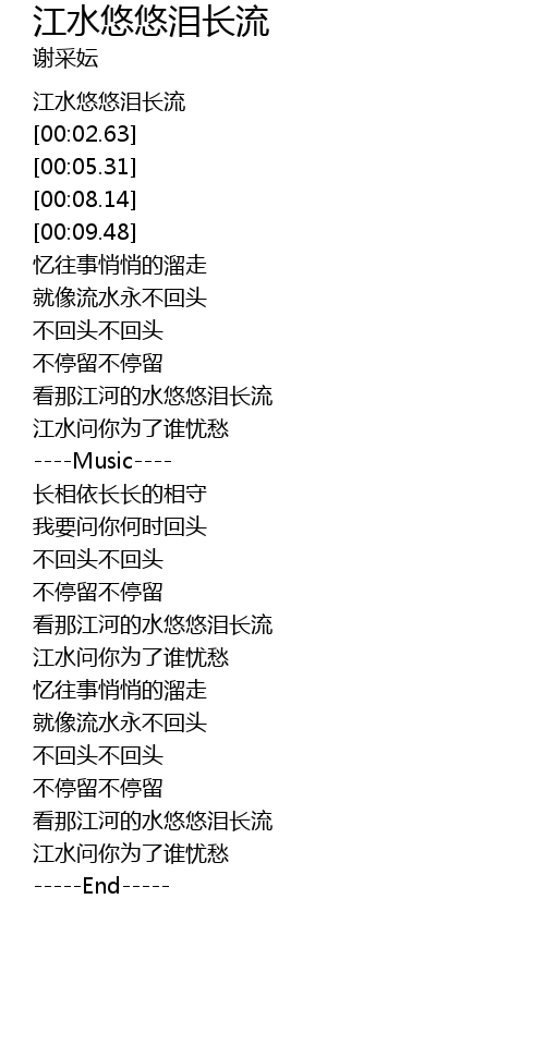 | [02:56.91] | 看那江河的水悠悠泪长流 |