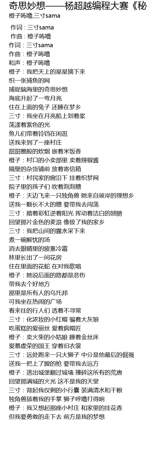 | [01:49.110] | 橙子:天边飞来一只独角兽 她来自彼岸的理想乡 |