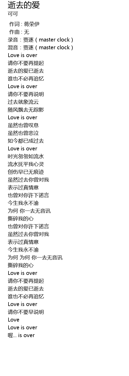 | [00:13.842] | Love is over |