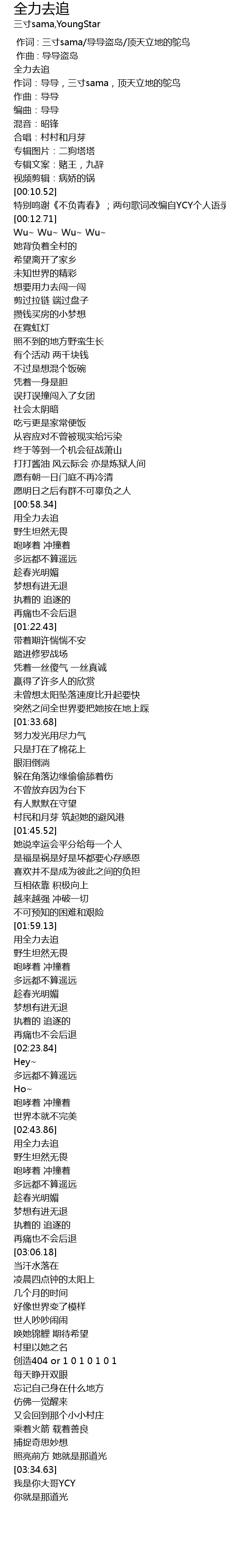 | [00:59.36] | 用全力去追 |