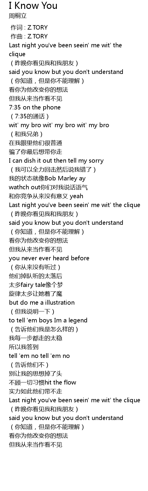 | [00:50.196] | Last night you've been seein' me wit' the clique |