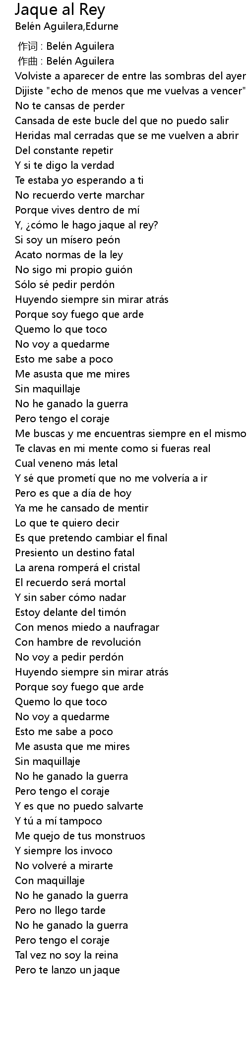 | [00:48.37] | Y, có mo le hago jaque al rey? |