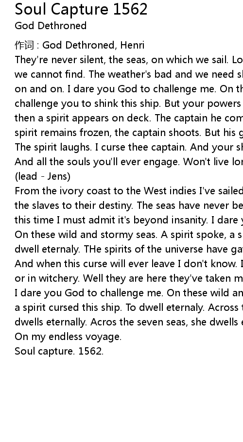 | a spirit cursed this ship. To dwell eternaly. Across the seven seas, she | |